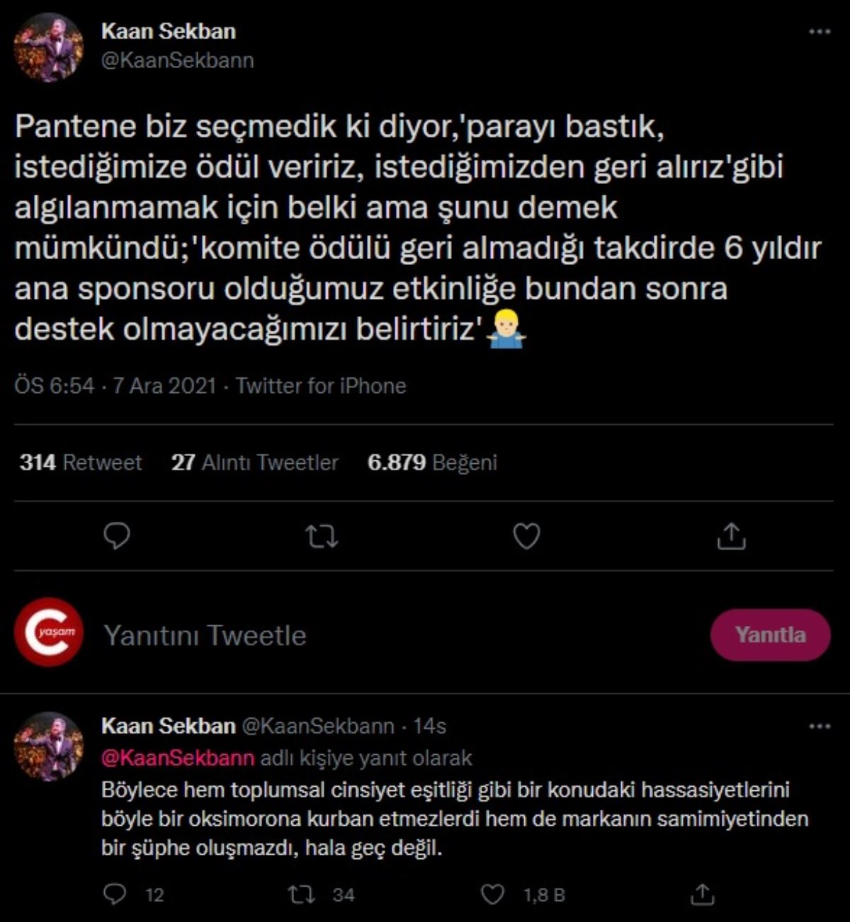 Sponsorluk kapsamında tek isteğin 'jüri üyelerinin yüzde 50'sinin kadın üyelerden oluşması' olduğu belirtilerek, P&G Türkiye ve Pantene'in 'cinsiyet eşitliği için mücadele eden şirketler' olduğu ifade edilmişti.