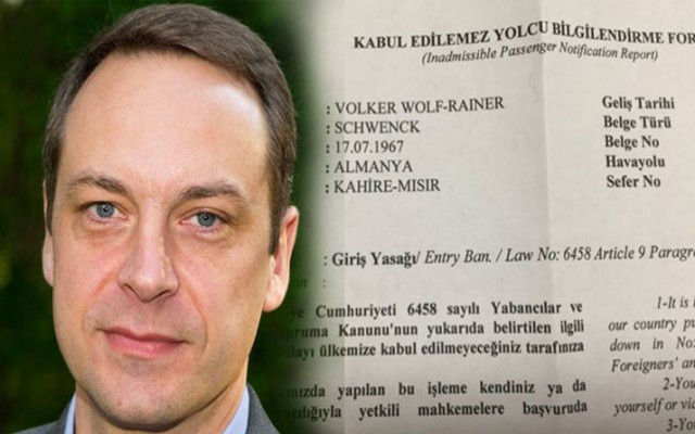 Türkiye’ye giriş yasağı bulunduğu öğrenilen Volker Schwenck’in, havalimanı Şubesi’ndeki işlemlerinin ardından ülkesine gönderildiği öğrenildi.