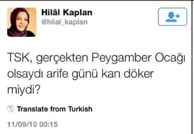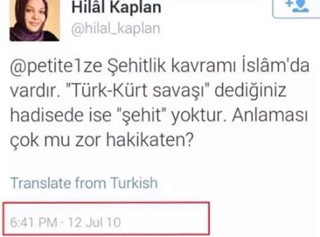 Bugün Kılıçdaroğlu’nu “şehitler tepesi boş kalacak” sözü üzerinden eleştiren Hilal Kaplan, daha önce, “TSK, gerçekten Peygamber Ocağı olsaydı arife günü kan döker miydi?” şeklinde mesaj yazmıştı. Terör örgütü PKK’nın şehit ettiği askerlere “şehit” denilmesine karşı çıkan Hilal Kaplan, arka arkaya “Sarı-Kırmızı-Yeşil” şeklinde PKK bayrağına övgü ima eden mesajlar da yazmıştı. “Şehitler tepesi boş kalacak” sözüne karşı çıkan Hilal Kaplan, PKK ve HDP ile yürütülen “Çözüm Süreci”nde şehit cenazelerinin bitmesi yönünde mesajları paylaşmıştı.