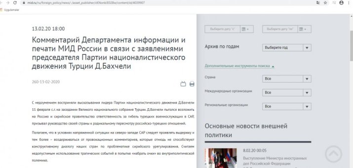 Bahçeli’nin bu açıklamasından sonra Rusya bir ilke imza attı. Rus Dışişleri Bakanlığı direkt Bahçeli’yi başlığa çekip çok ciddi eleştiren bir not paylaştı.