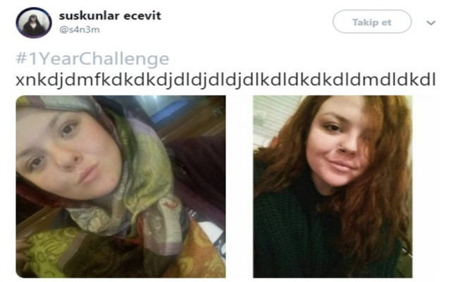 Kullanıcıların, on yıl önceki ve şu anki hallerini paylaştıkları akıma uyarak geçmişte başörtüsü kullanan bazı kadın kullanıcılar bugünkü başörtüsüz hallerini “#1YearsChallenge” etiketi altında günlerdir hız kesmeden paylaşıyor.