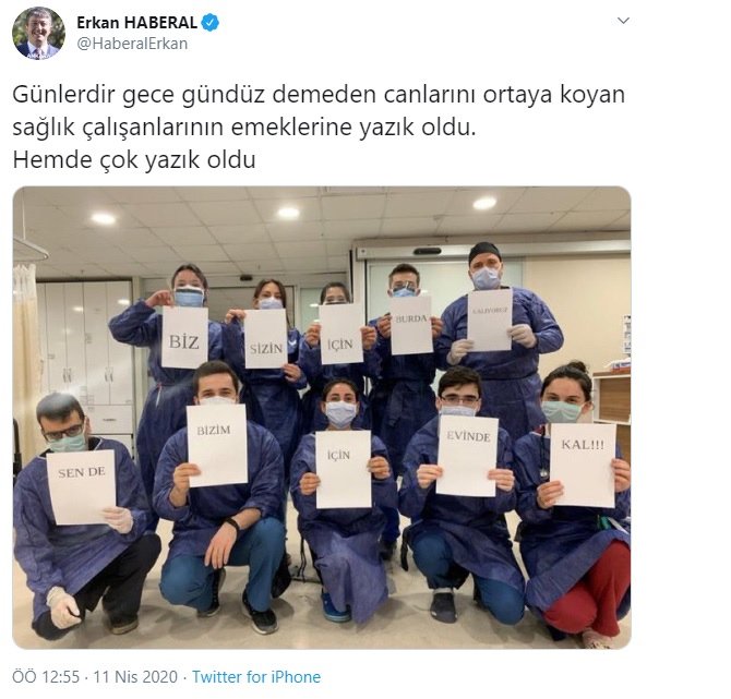 "Günlerdir gece gündüz demeden canlarını ortaya koyan sağlık çalışanlarının emeklerine yazık oldu. Hem de çok yazık oldu"