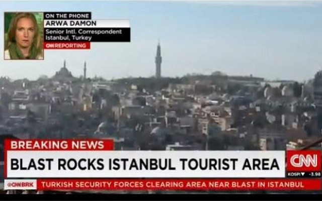 Amerikan CNN televizyonu ile İngiliz yayın kuruluşu BBC de Sultanahmet Meydanı'ndaki patlamayı 'son dakika' gelişmesi olarak geçti.