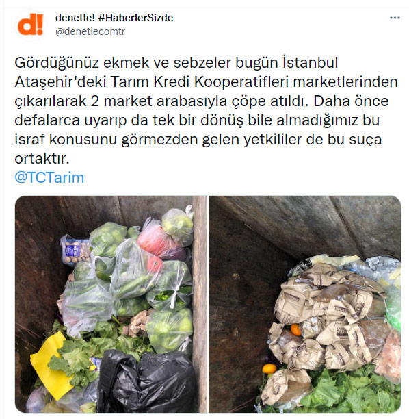 İstanbul, Ataşehir'deki Tarım Kredi Kooperatifleri marketlerinden iki market arabasıyla yiyeceklerin çöpe atıldığı görüntüler sosyal medyada gündem oldu.