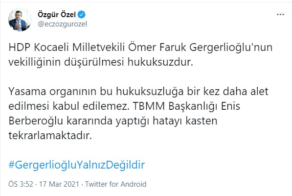 Gergerlioğlu'nun vekilliğinin düşürülmesine Tepkiler