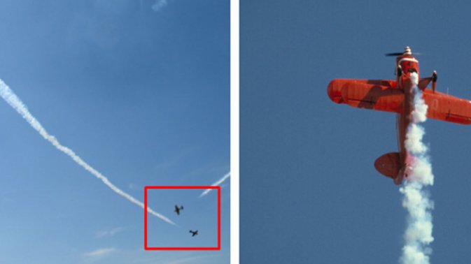 Fotoğrafın ise daha sonrasında Amerikan fotoğrafçılık ajansı Getty Images üzerinden ulaşılabilen orijinal versiyonunda iki akrobasi uçağının havada romantik bir gösteri yaptığı belirlendi.