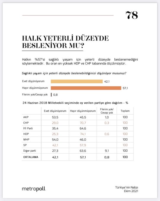 Metropoll Araştırma'ya göre sağlıklı yaşam için yeterli düzeyde beslenemediğini söyleyenlerin oranı yüzde 57,1.