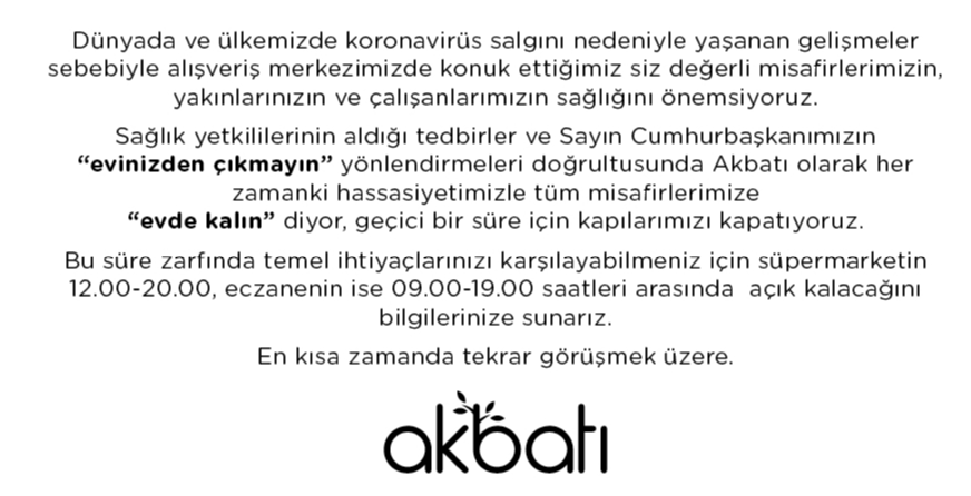 İstanbul'da bulunan Akasya, Akbatı, Akmerkez ve Armada salgını nedeniyle yönetim olarak geçici bir süre kapatma kararı aldı.