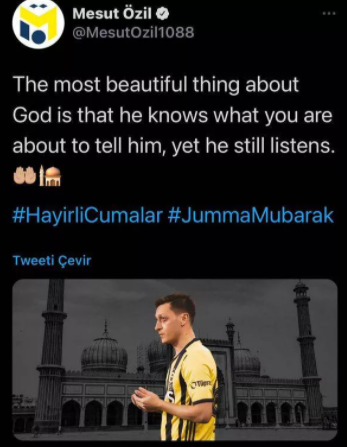 Ancak bugün Cuma münasebetiyle yaptığı paylaşım, benim “Mesut Özil ne yerli ne de millidir” fikrimin doğruluğunu kanıtlar nitelikte."