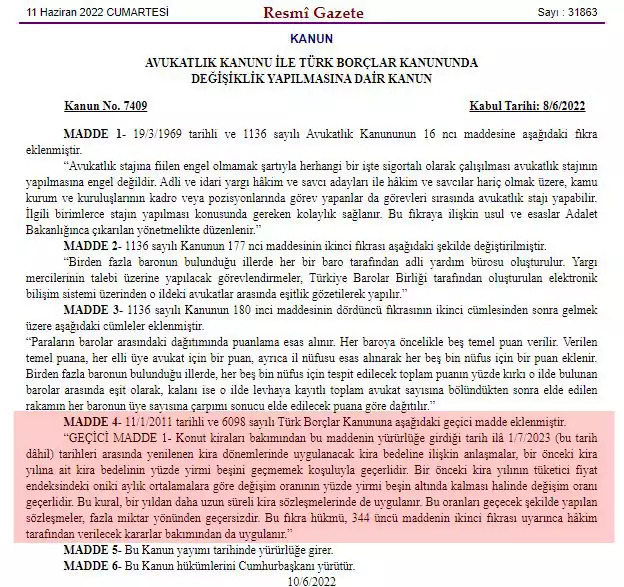 Düzenlemeye göre; 1 Temmuz 2023'e kadar yenilenecek konut kira sözleşmelerinde artış bir önceki kiranın yüzde 25'ini geçemeyecek.