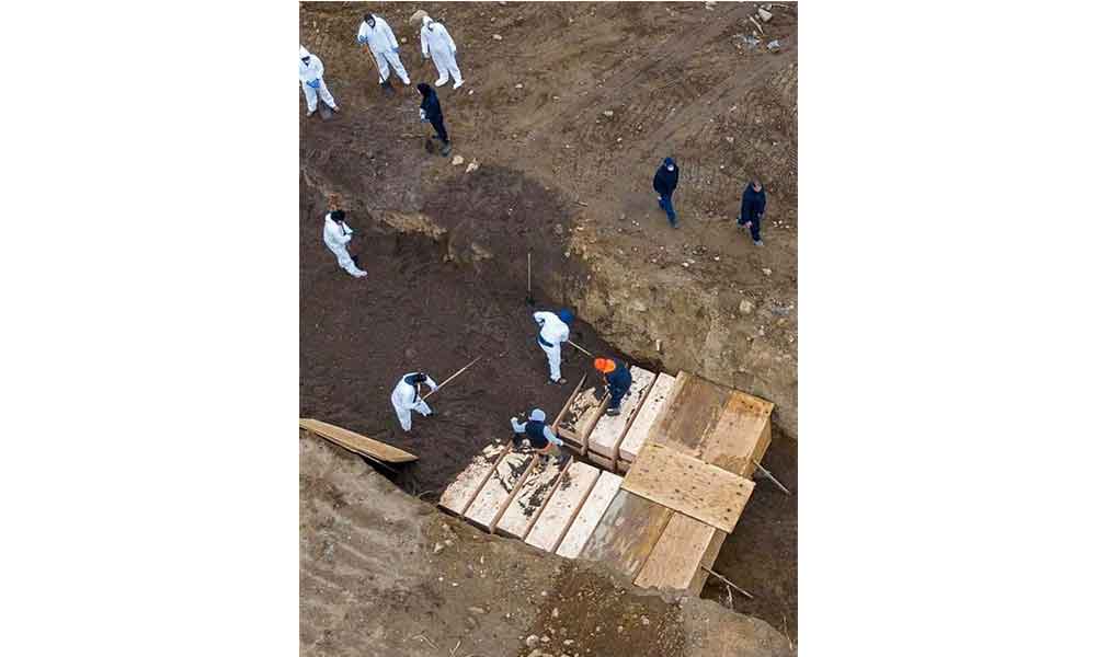 Görüntülerinde, New York’ta salgından vefat eden fakir ve kimsesizlerin yan yana gömüleceği yerler olduğu belirtilen mezarların, savaş durumunu andıran siperler görülüyor.