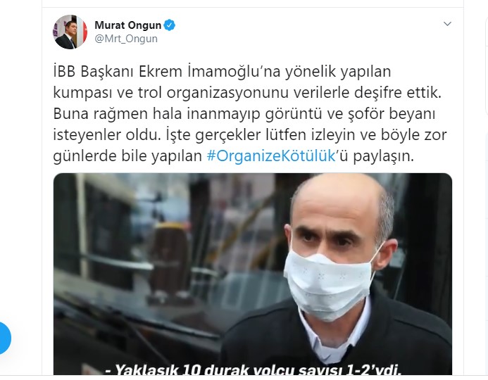 İstanbul Büyükşehir Belediyesi sözcüsü Murat Ongun, İETT şoförlerinin anlatımı ve otobüs içinden görüntüleri paylaşarak şöyle yazdı: