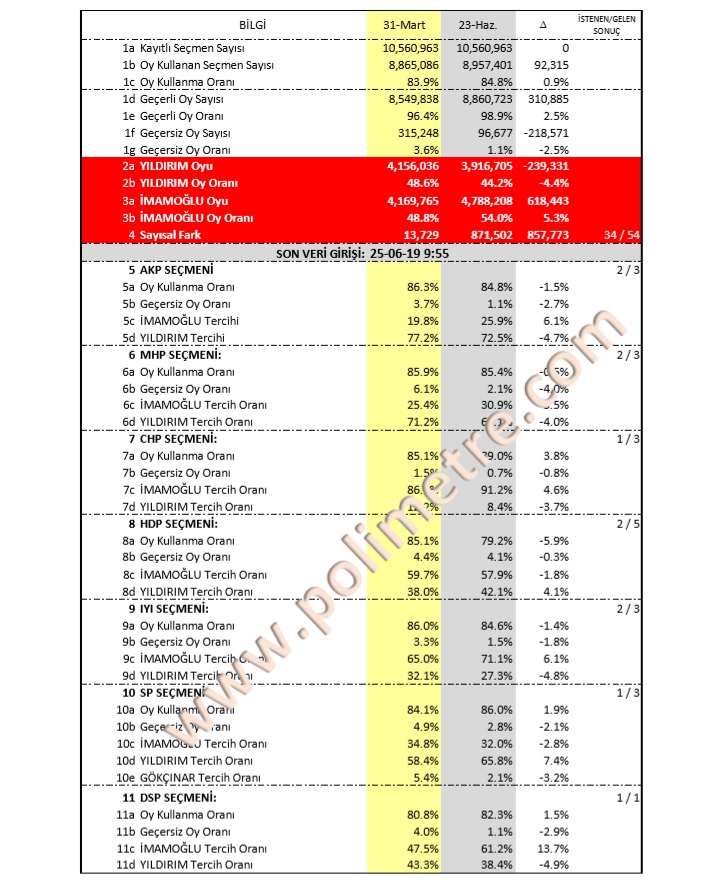 Polimetre’nin ‘Erken Sonuç Raporu 25-Haziran-2019’ şöyle: