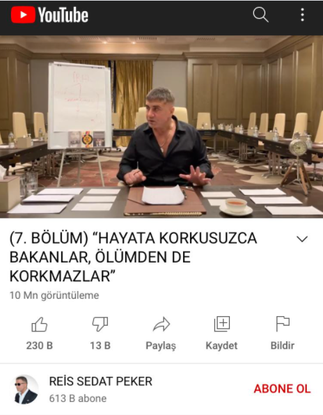 Sedat Peker'in Youtube hesabında 613 bin abonesi bulunuyor.
