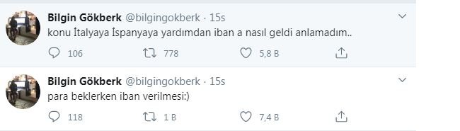 Bilgin, yaptığı paylaşım ile herkesi güldürdü. Bilgin kampanyayla ilgili, “Yardımdan ibana nasıl geldik. Para beklerken iban verilmesi” ifadelerini kullandı.